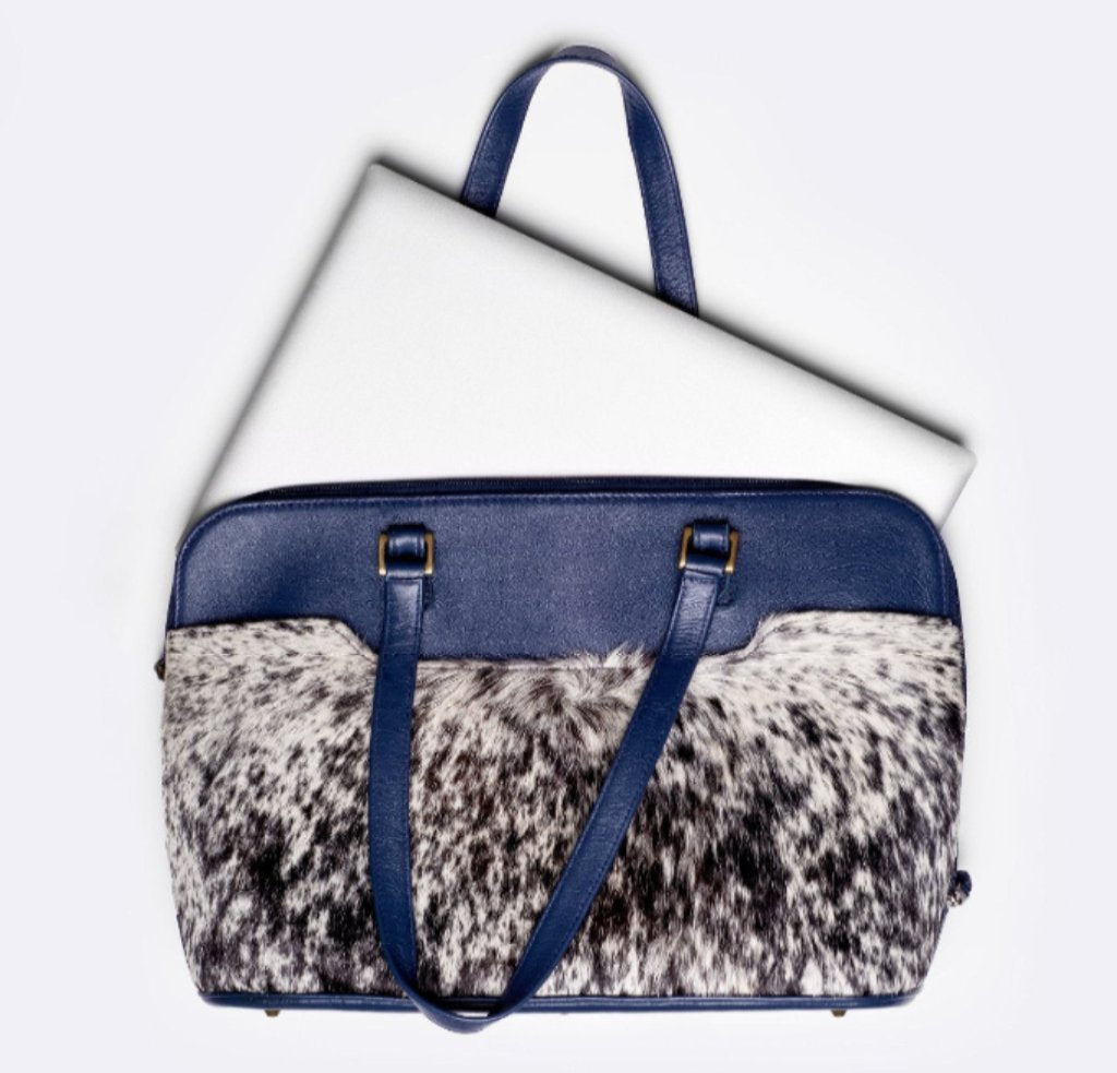 Make a statement with this stylish genuine leather laptop bag with double handles and two large compartments with a middle compartment to hold a 15″ laptop. Please note no Nguni is the same. The intensity of colour and pattern differs from skin to skin